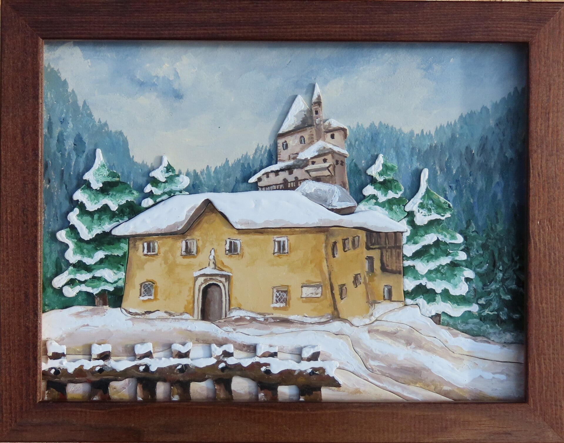 Quest'opera ritrae il famoso eremo in Val di Non (Trentino), visitato da pellegrini e turisti provenienti da tutta Italia. Commissionato come ricordo personale da parte di un devoto al Santo.