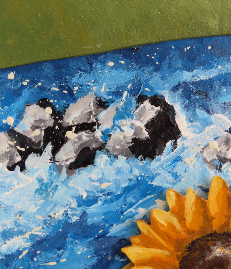 Pittura con colori acrilici, vernice all'acqua, colla per legno