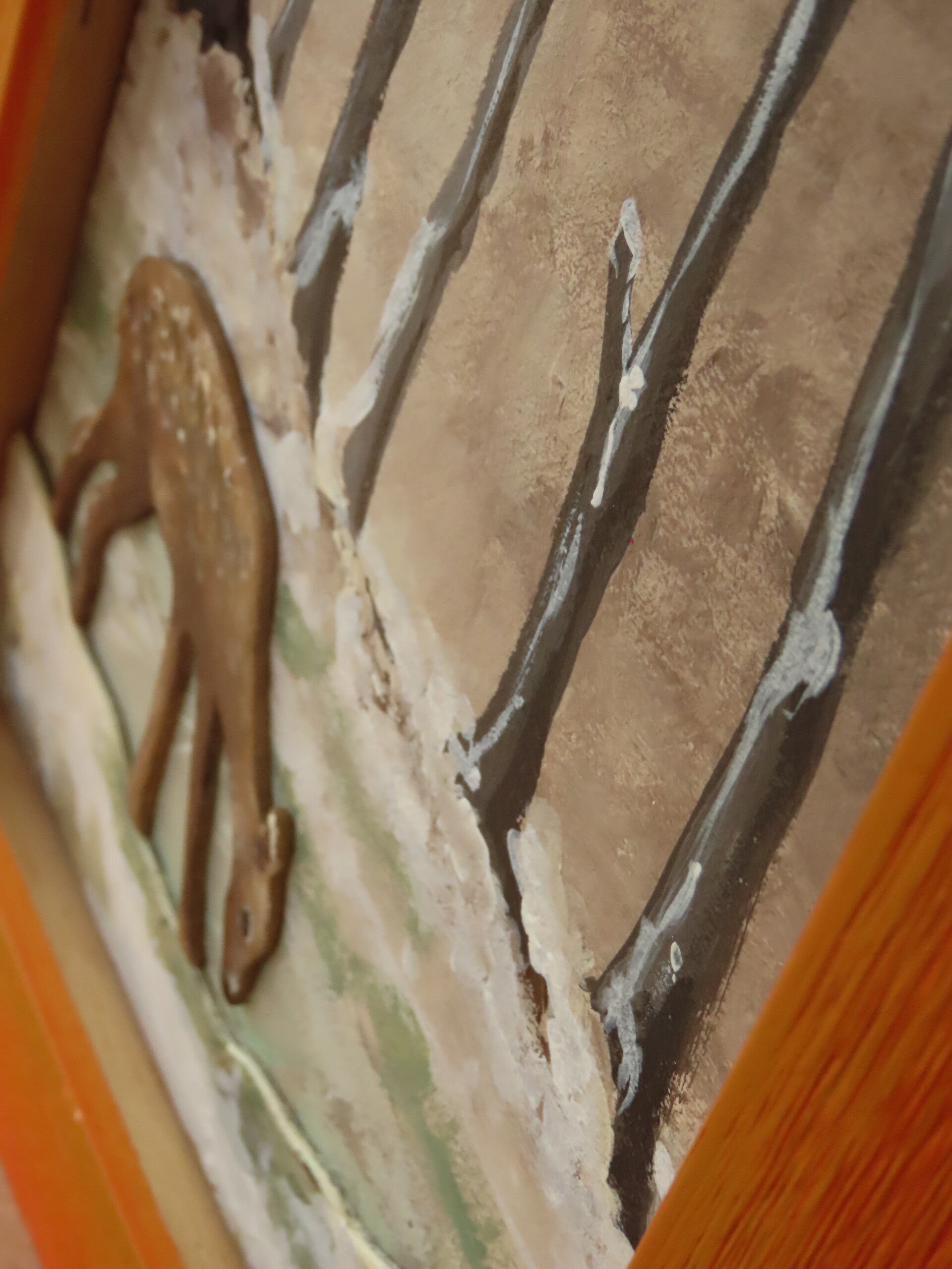La cornice è in legno color arancio ed è di recupero.