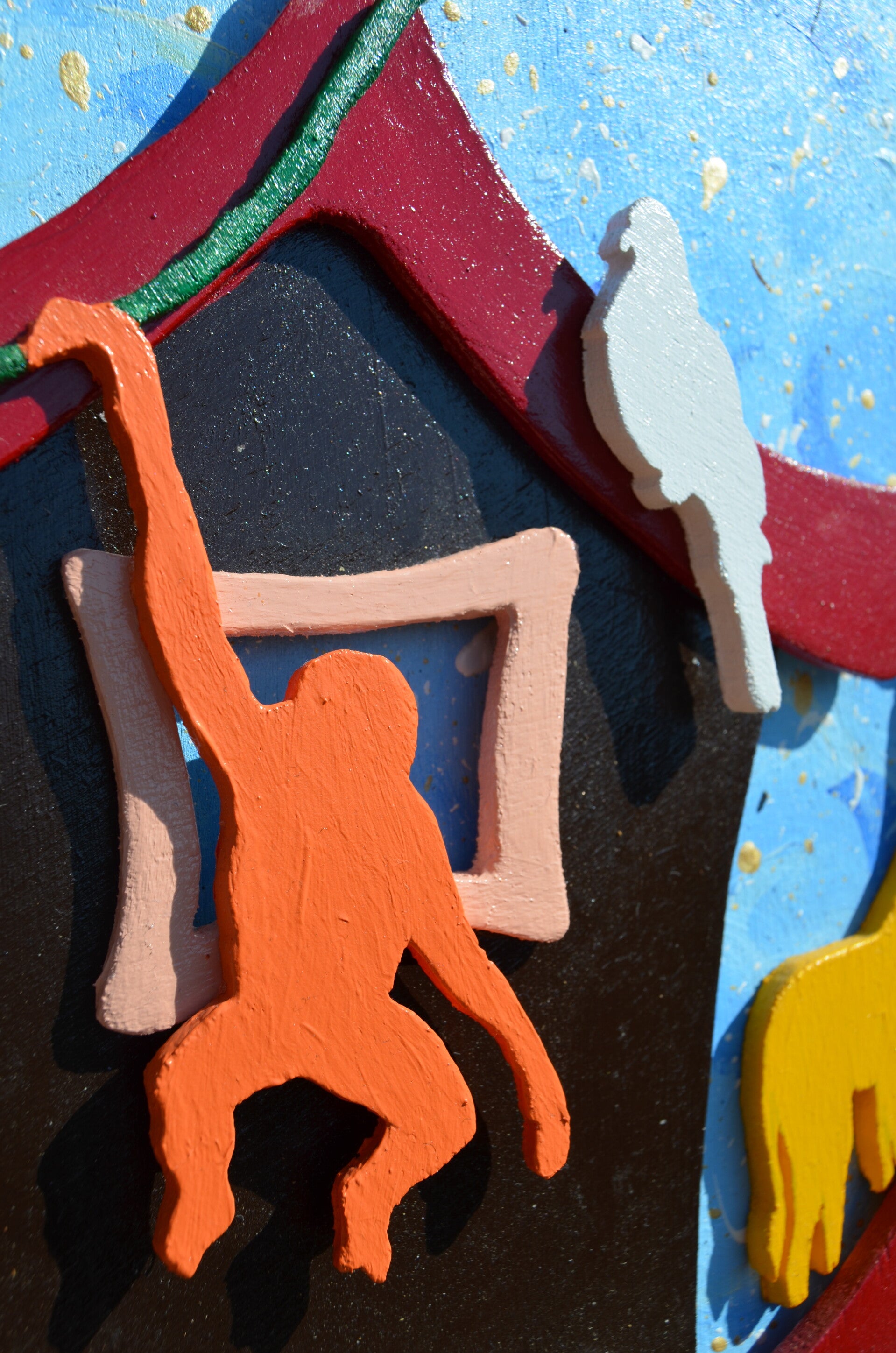 Pittura con colori acrilici, vernice ad acqua, colla per legno