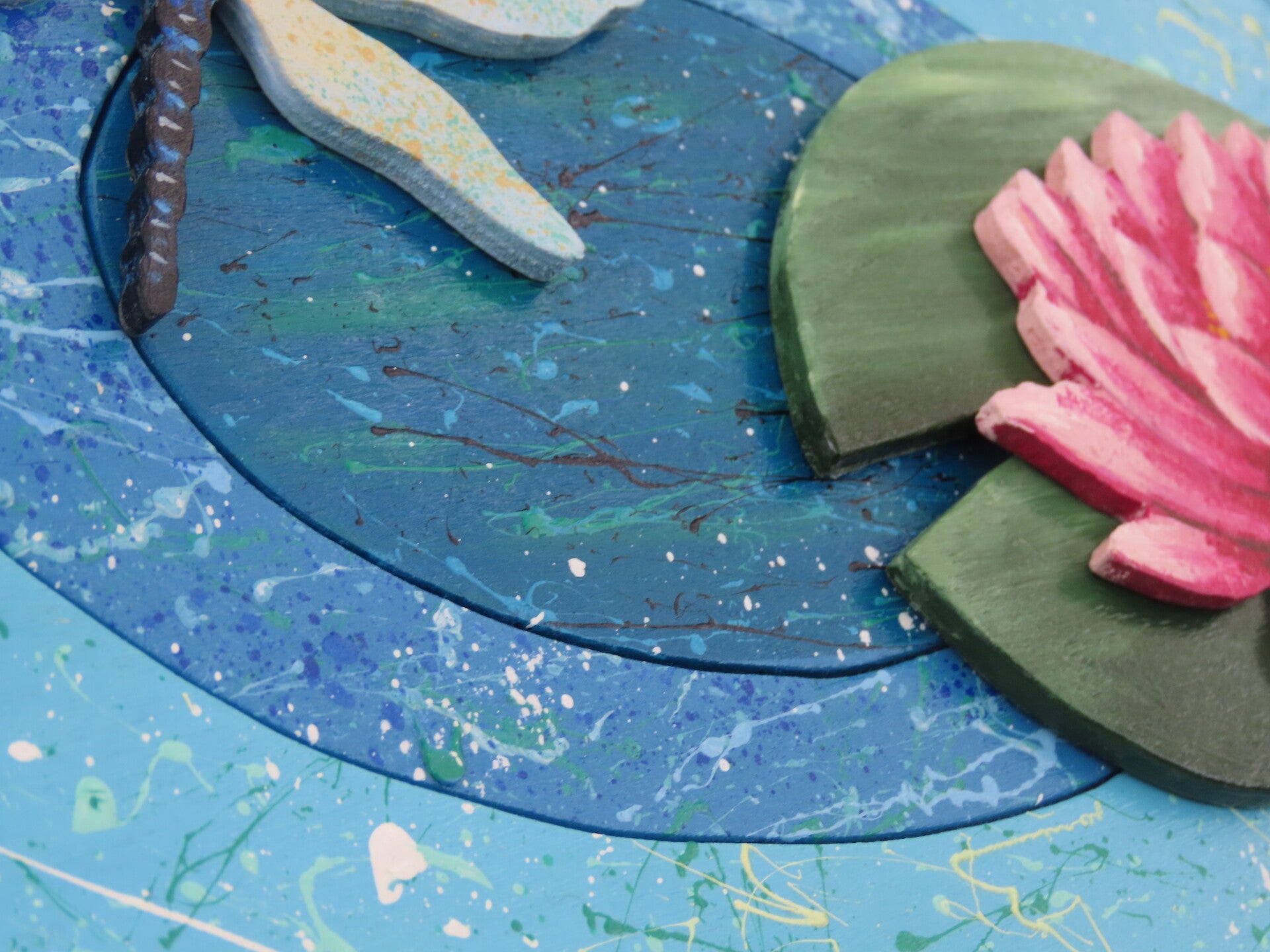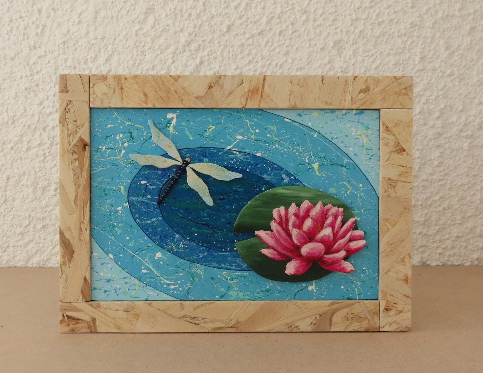 Pittura con colori acrilici, vernice ad acqua, colla per legno