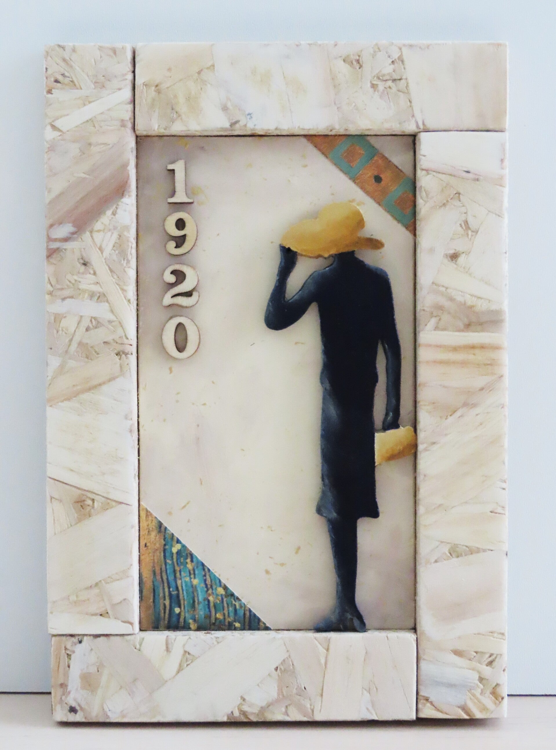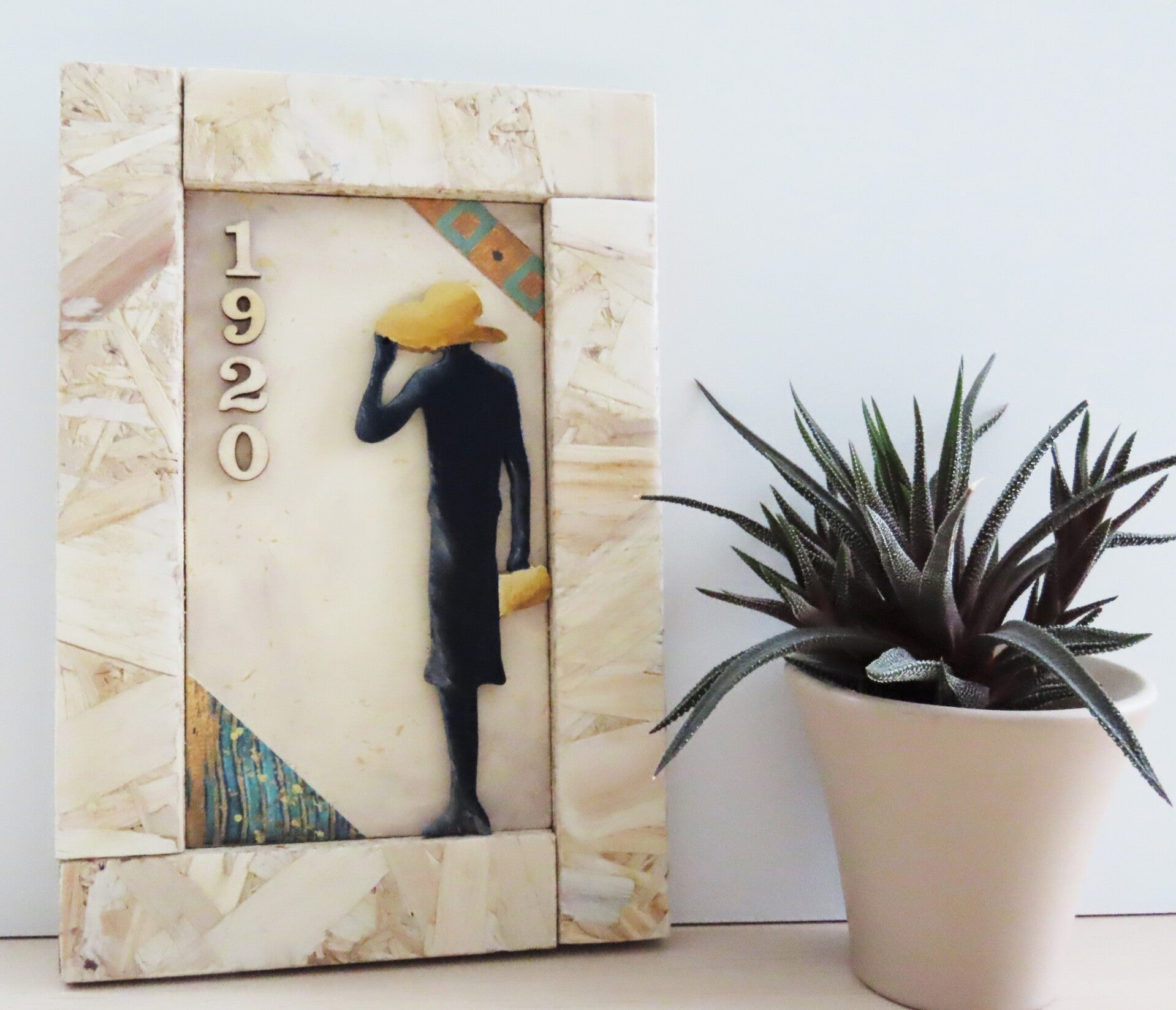 La cornice è realizzata dall'artista in legno OSB.