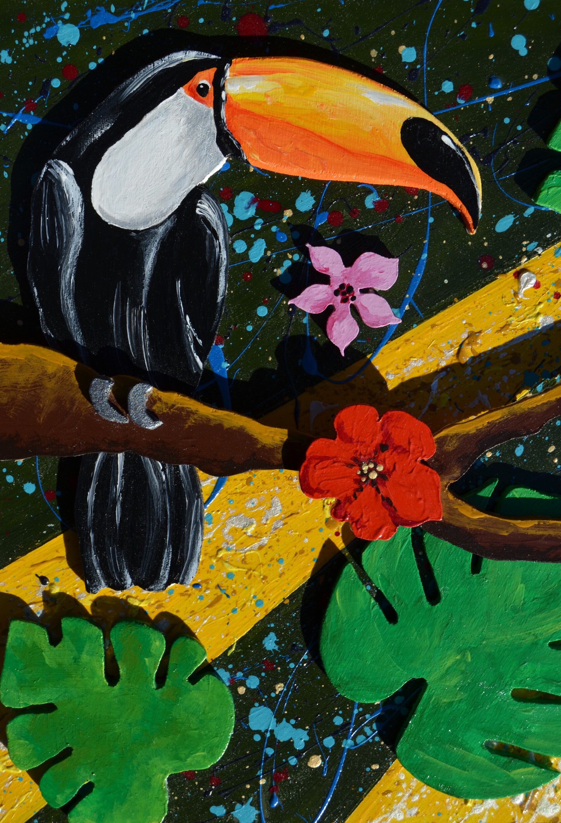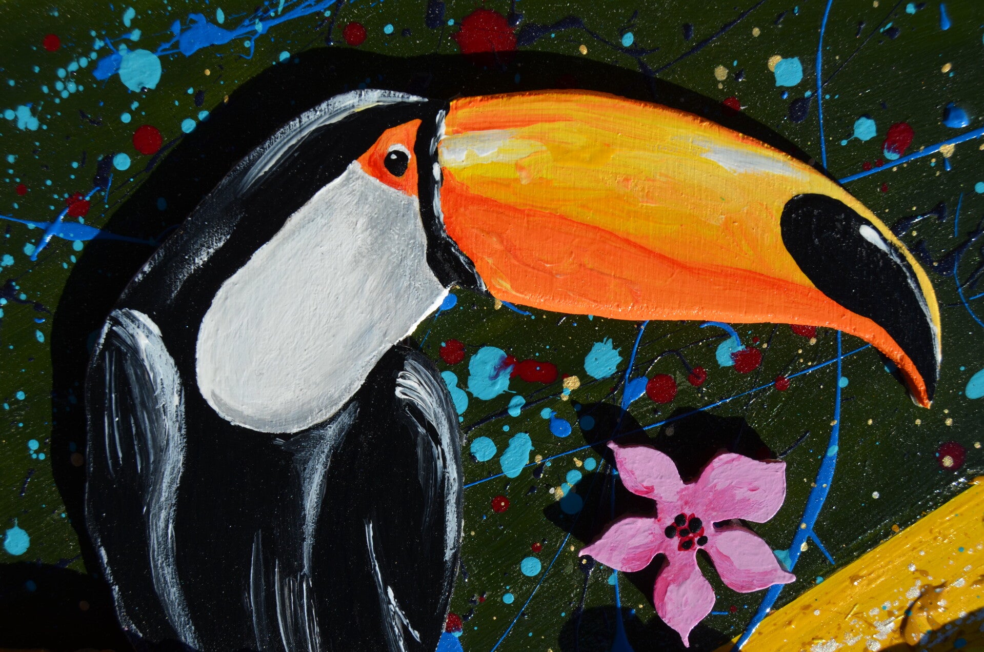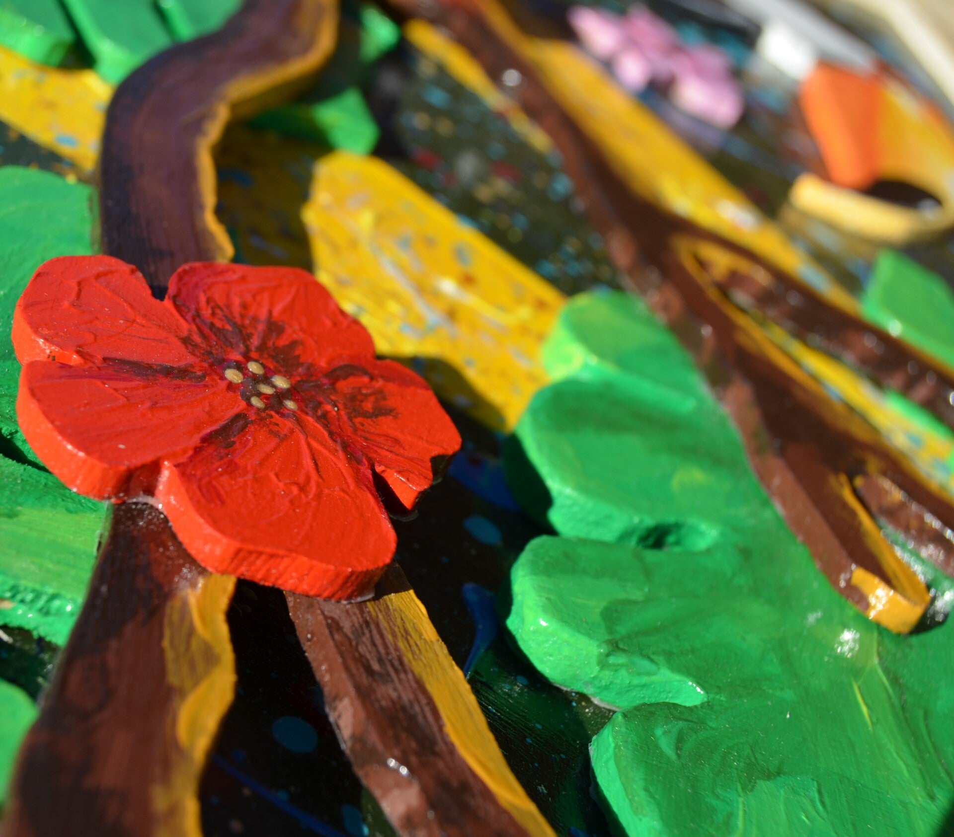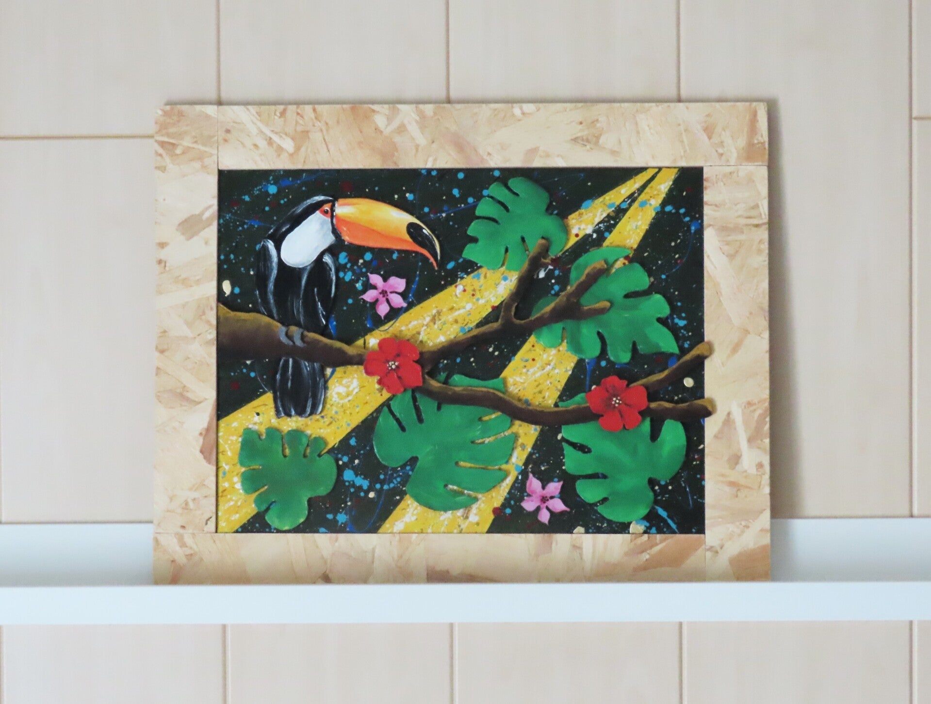 Pittura con colori acrilici, vernice ad acqua, colla per legno