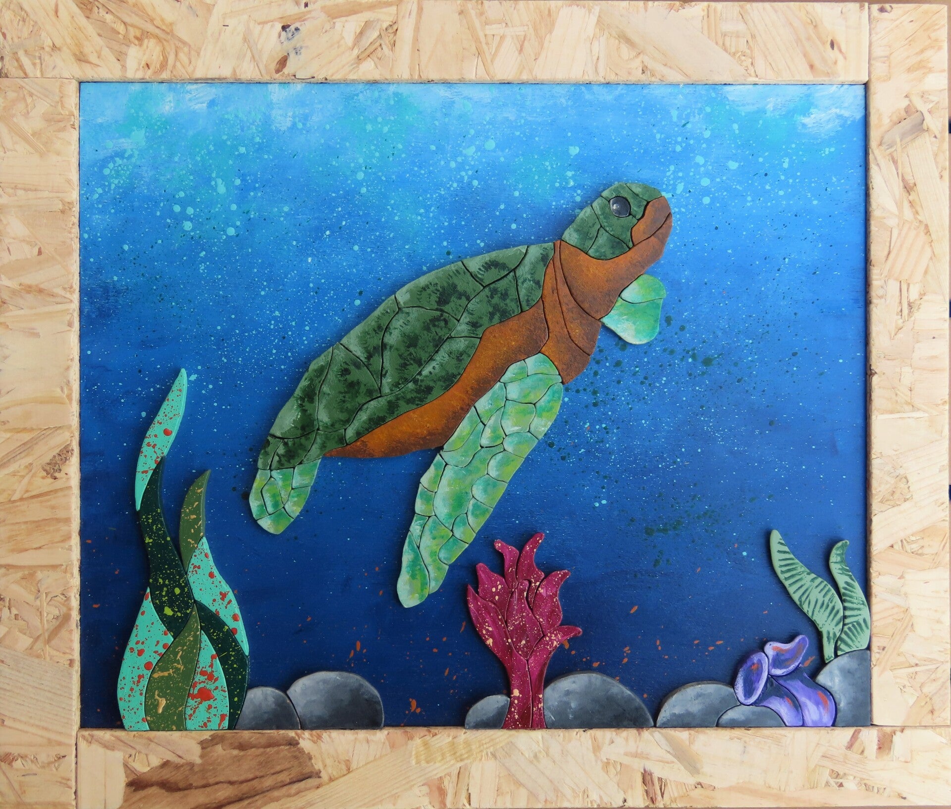Pittura con colori acrilici, vernice ad acqua, colla per legno
