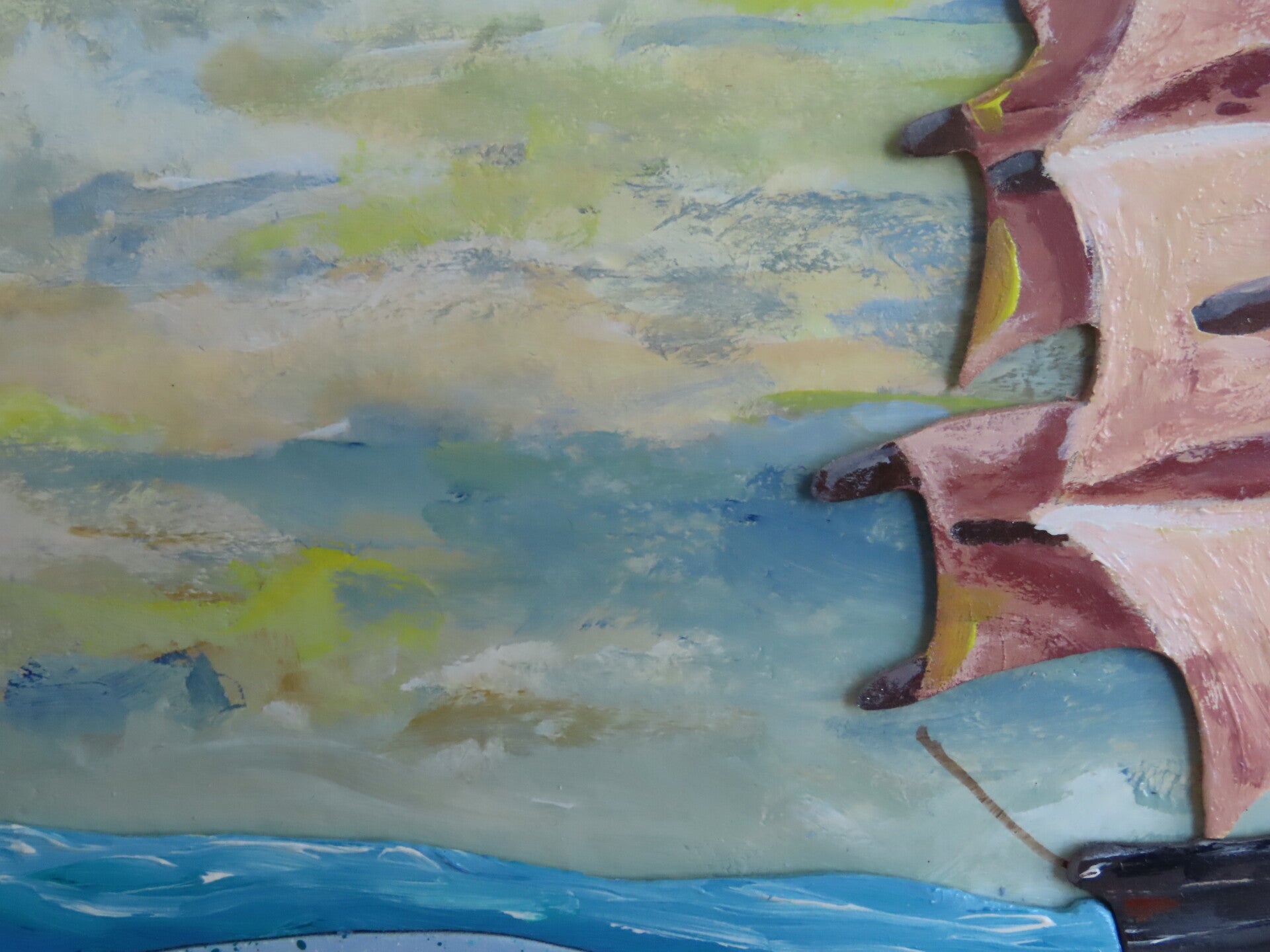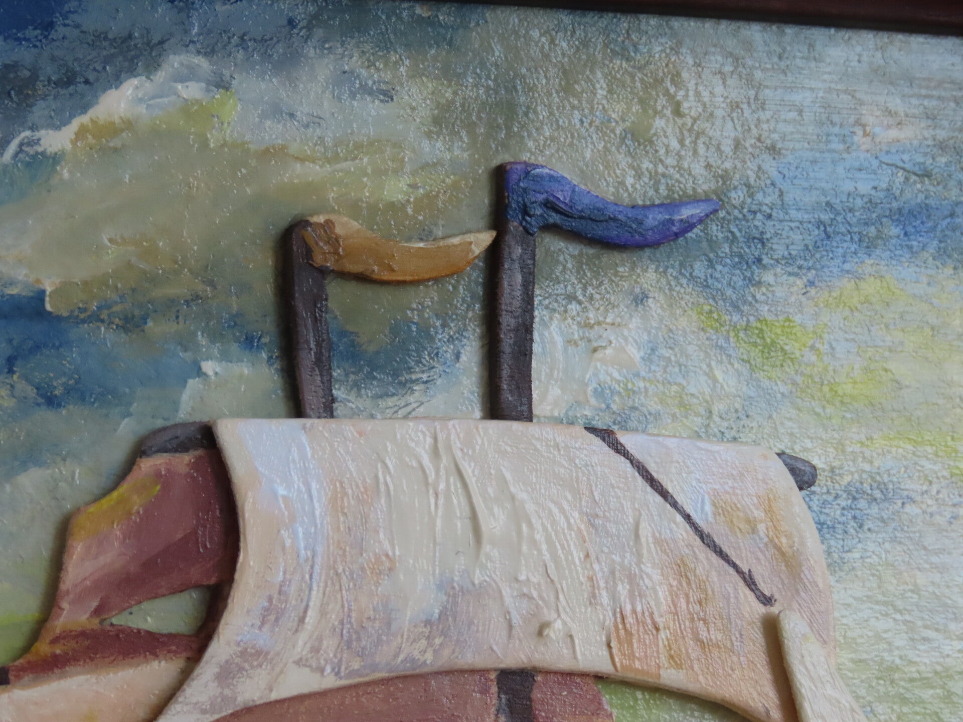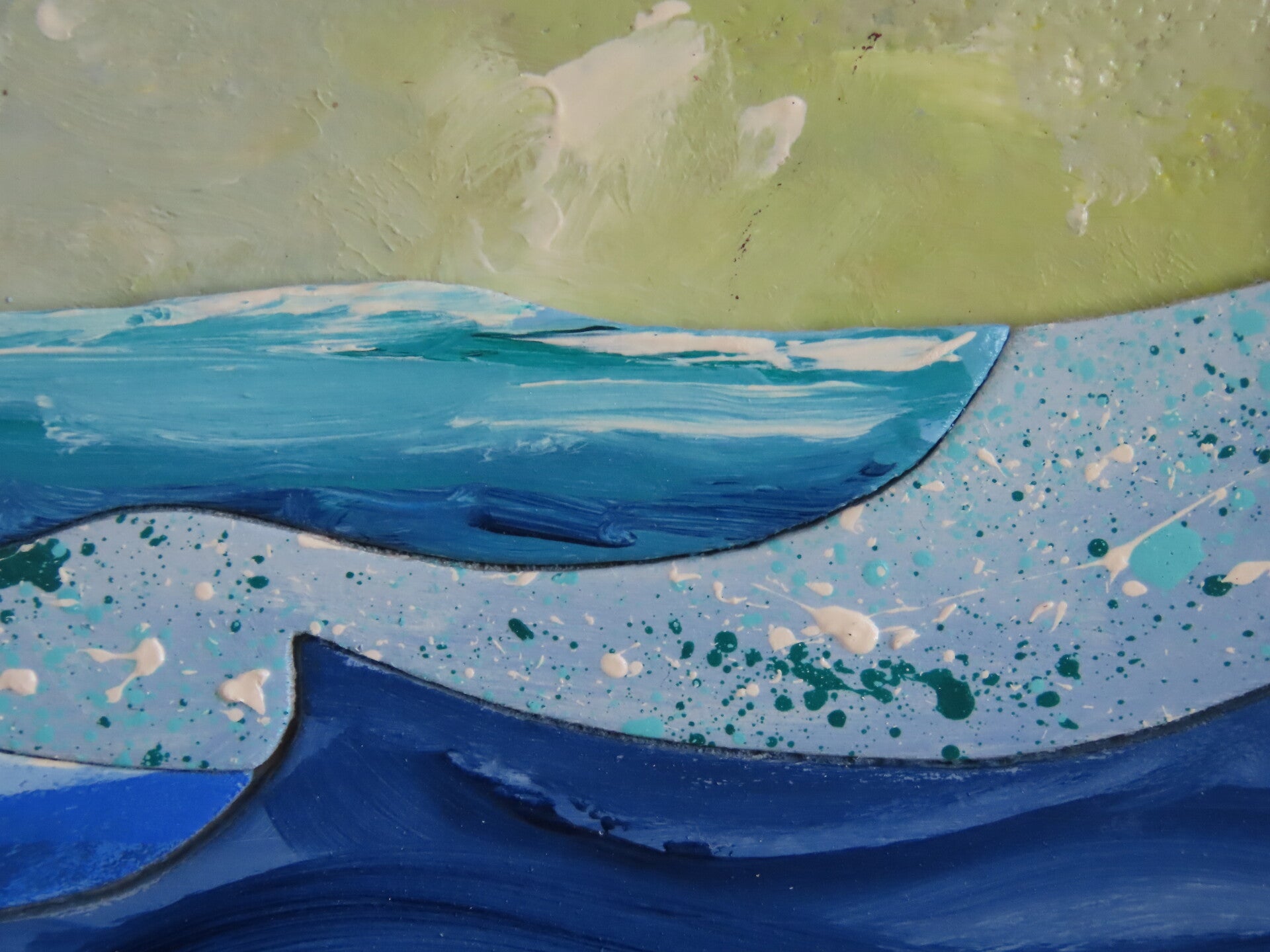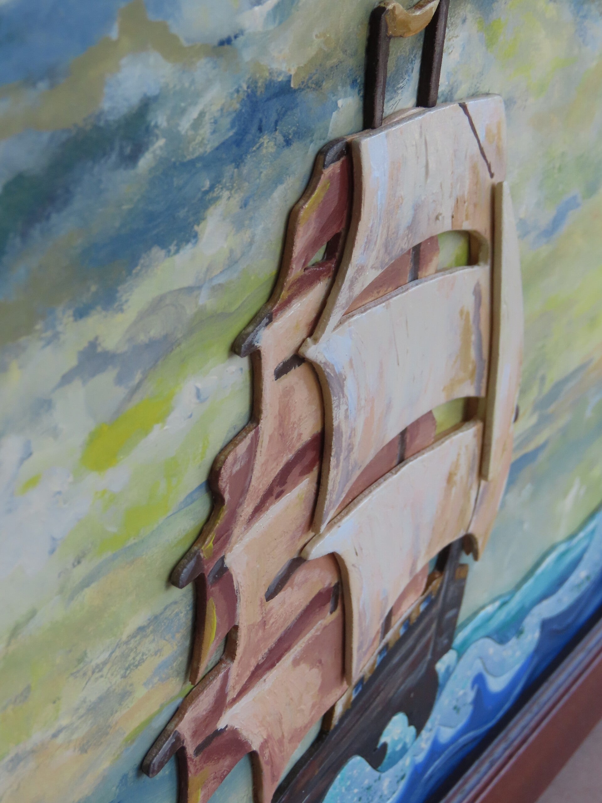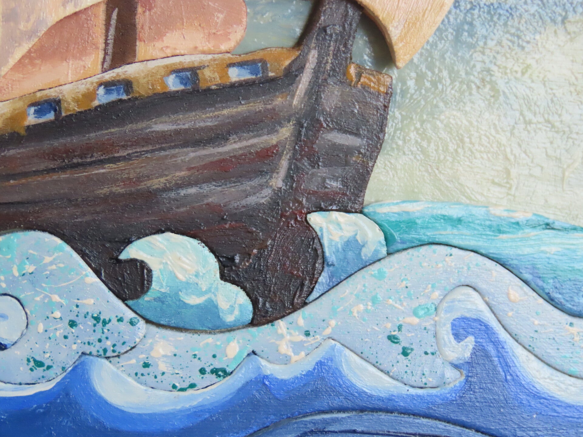 Pittura con colori acrilici, vernice ad acqua, colla per legno